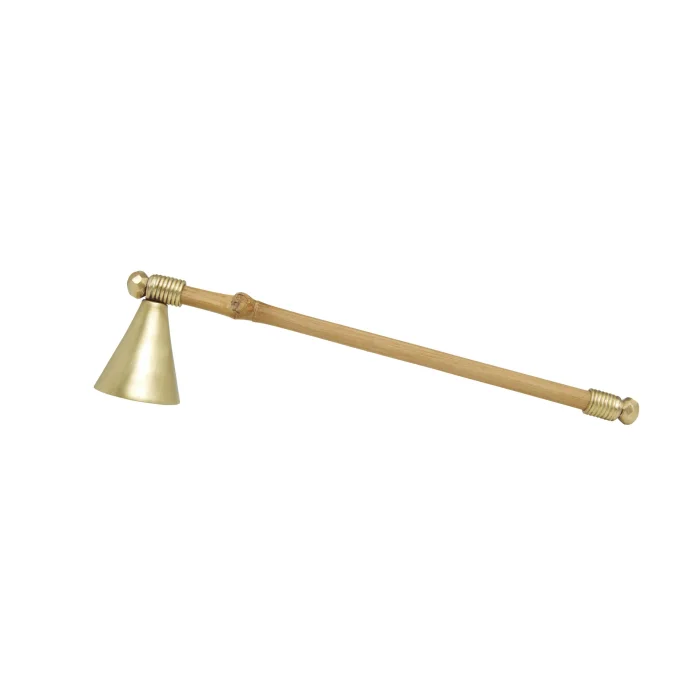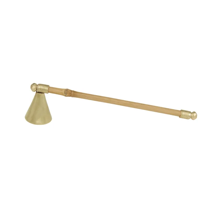 Handmade brass candle snuffer with bamboo stick.