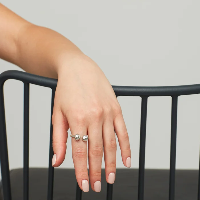 Adjustable mini moon ring in silver.