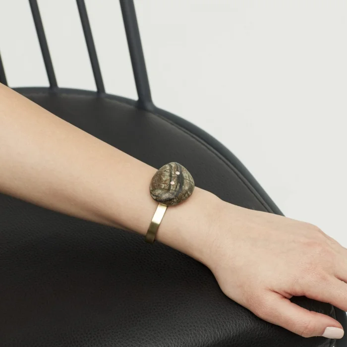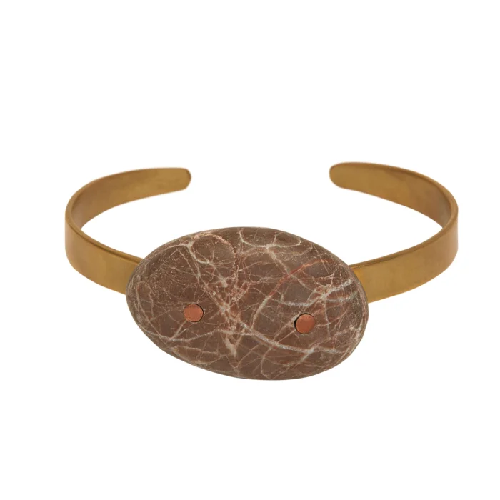 Handmade pebble cuff bracelet with magnets.
