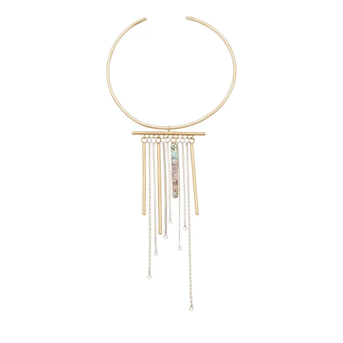 Handmade brass choker with silver chains and a hidden beauty : mother of pearl.
