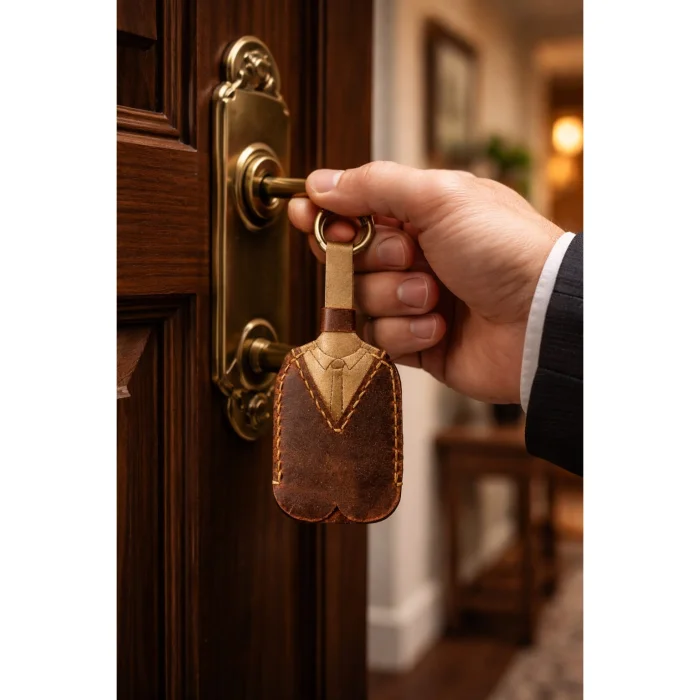 Each keychain is unique and unique due to its natural leather texture and handcraft.