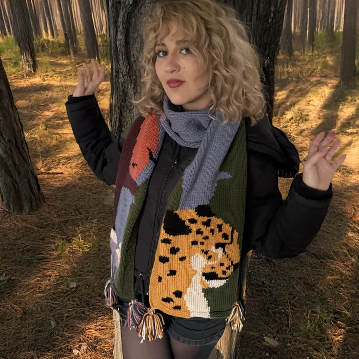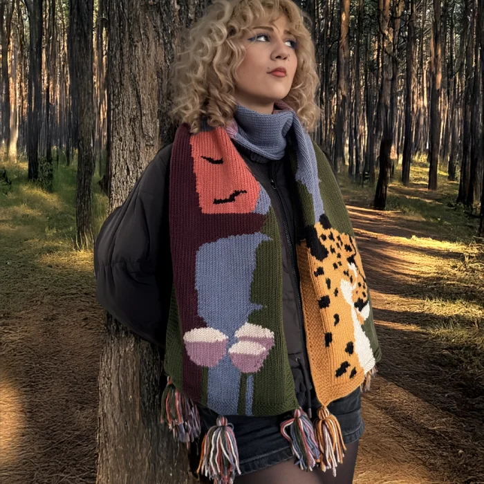 - The scarf is hand-knitted, so there may be slight differences in color, motif and sizes. You can see the CURRENT SCARF THAT WILL BE SENT TO YOU in the image with a white background. Other images may be sample shots of previously knitted versions so you can see the posture of the scarf.