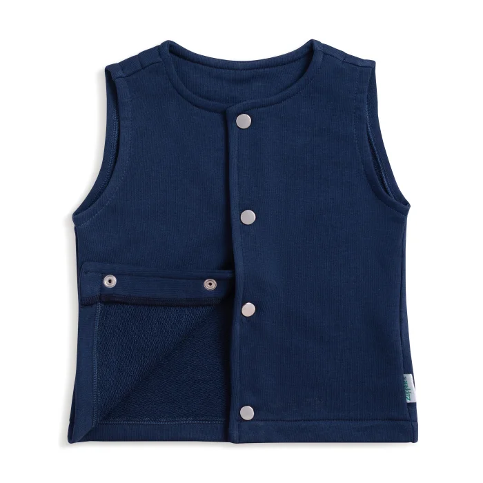 Cotton Vest with Snap Fastener; It is 100% cotton, sweatshirt type fabric. With its tough fabric, unlike classic vests, it provides both a stylish and simple look. It is regular molded, full size. There is an extra lining on the nape of the same cotton fabric. It breathes and has a soft texture. The snaps do not contain nickel. Suitable for both baby boys and girls. It is suitable for use at home on a bodysuit or sleeping bag and outside. Their labels are made of organic cotton. The same pattern can be combined with shorts, joggers and T-shirts. Size: 0-3 months, 3-6 months, 6-12 months, 1-2 years, 2-3 years, 3-4 years, 4-5 years Cotton Vest with Snap Fastener Dimensions (+-2 cm) 0-3 months Hem-to-shoulder hem: 27 cm.; ; Chest (from right to left): 24 cm 3-6 months Hem-to-shoulder hem: 29 cm.; ; Chest (right-left): 25 cm 6-12 months Shoulder to hem: 32.5 cm.; ; Chest (right-left): 27 cm 1-2 Years Skirt at the shoulder: 37 cm.; ; Chest (right to left): 29 cm 2-3 Years Skirt at the shoulder: 38 cm.; ; Chest (right-left): 31 cm 3-4 Years Skirt at the shoulder: 41 cm.; ; Chest (right-left): 33 cm 4-5 Years Skirt at the shoulder: 44 cm.; ; Chest (right-left): 34 cm It can be washed in the washing machine at 30° with similar colors. Do not tumble dry. Fabric: 100% Cotton Made in Turkey.