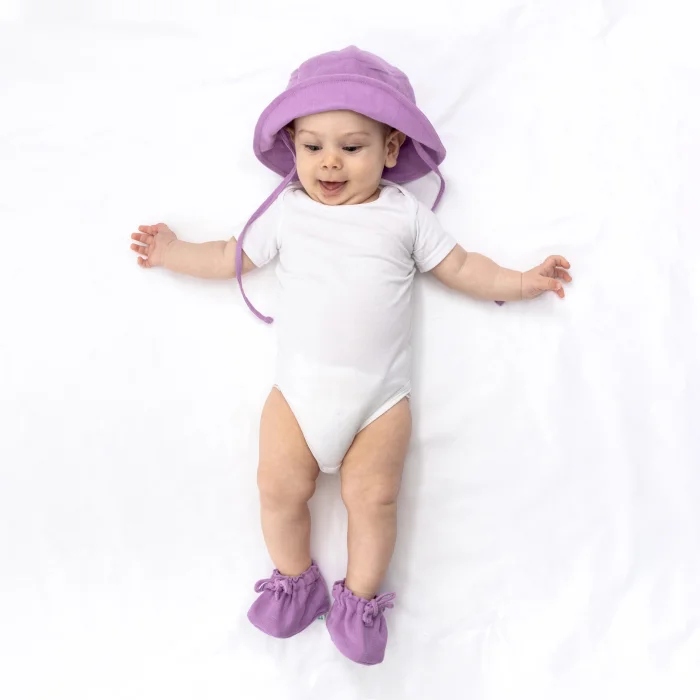 Muslin Baby Hat is GOTS certified and organic cotton. With 4 layers of weaving, our hats have a self-shrinking texture after washing. It provides a comfortable use with its ropes. Muslin Baby Hat Our hats, which complement our organic cotton muslin collection, make your baby comfortable with their soft texture. Even the woven label is made of 100% cotton. You can combine our muslin hats with Zuppers Booties and Scarf Aprons. Product Details: Can be washed in the washing machine at 30°. Inside & Outside: 100% Organic Cotton