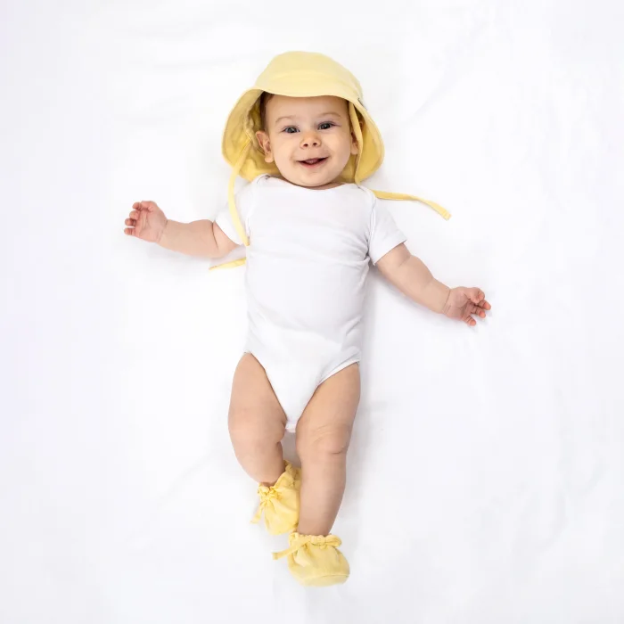 Muslin Baby Hat is GOTS certified and organic cotton. With 4 layers of weaving, our hats have a self-shrinking texture after washing. It provides a comfortable use with its ropes. Muslin Baby Hat Our hats, which complement our organic cotton muslin collection, make your baby comfortable with their soft texture. Even the woven label is made of 100% cotton. You can combine our muslin hats with Zuppers Booties and Scarf Aprons. Product Details: Can be washed in the washing machine at 30°. Inside & Outside: 100% Organic Cotton