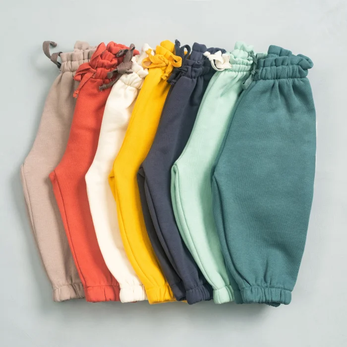 Unisex Baby Thick Cotton Jogger Pants Unisex Baby Thick Cotton Jogger Pants are made of thick cotton, shaggy fabric suitable for winter and spring seasons. The waist is elastic for easy donning and doffing, and the drawstrings are cotton. The leg is elastic to maintain the baby's body temperature. It breathes and has a soft texture. Suitable for home and/or outdoor use. The label is made of organic cotton. Suitable for both baby boys and girls. Product Details:Size: 0-3 months, 3-6 months, 6-9 months, 9-12 months, 12-24 months, 2-3 years old It can be washed in the washing machine at 30° with similar colors. Do not tumble dry. Fabric: 90% Cotton 10% Polyester Made in Turkey.