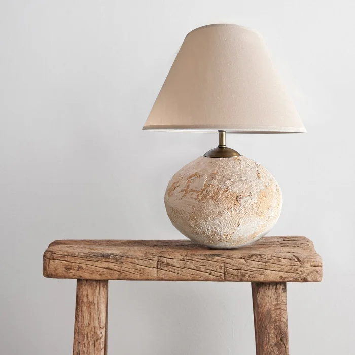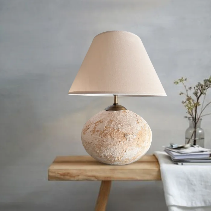 It is 100% handmade so there may be slight variations between products. High grade stoneware ceramic. ivory linen lampshade cap Antique bronze apparatus and cable E27 socket