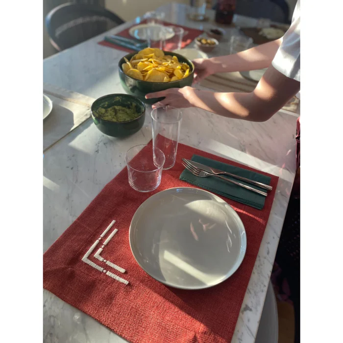 Special design placemat with double corner line embroidery detail. It is the price of one product. You can create a set in different amounts you prefer.
