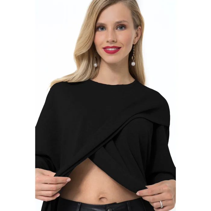 Made entirely of imported cotton, this knitwear sweater can be worn in all seasons. It is a timeless piece that you can use during pregnancy, breastfeeding and beyond. It is differentiated by its model as well as its breathable and skin-friendly texture. Thanks to the bat wings that open from the front to both sides, you can easily breastfeed anywhere without using a nursing shawl.