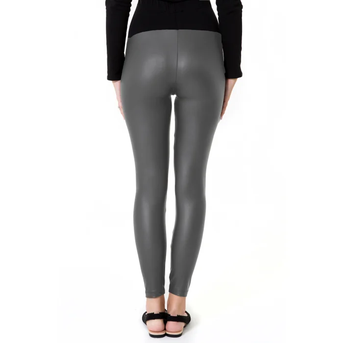 Subtle Foldover Waistband Faux Leather Maternity Leggings