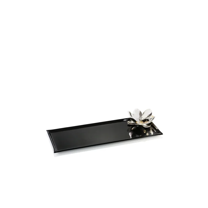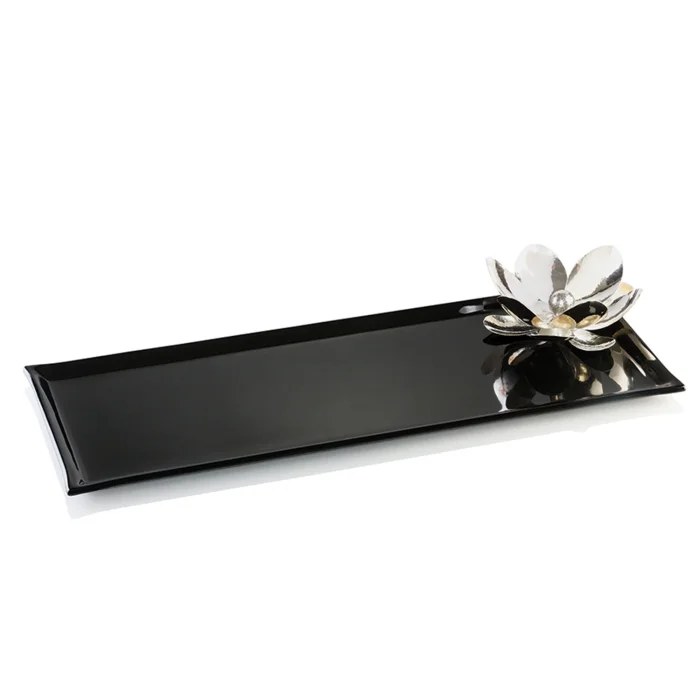 Diameter: 6 cm x Height: 17 cm Gold Magnolia Flower + SilverA specially designed, handmade serving plate produced with fusion technique, completed with silver plating and petal magnolia detail.