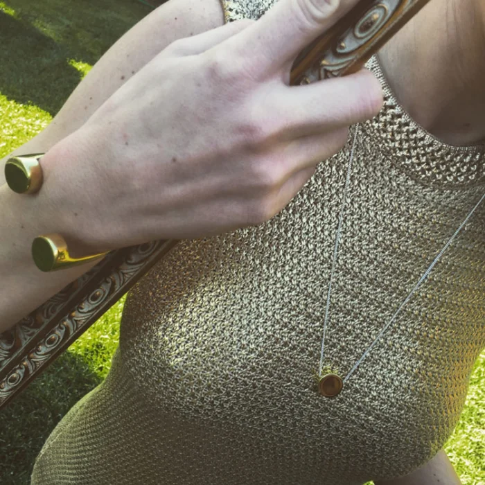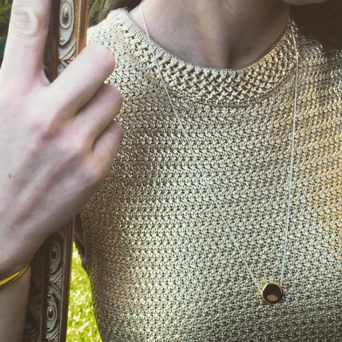 Gold-plated silver body and handmade. The length of the necklace is 70 cm.