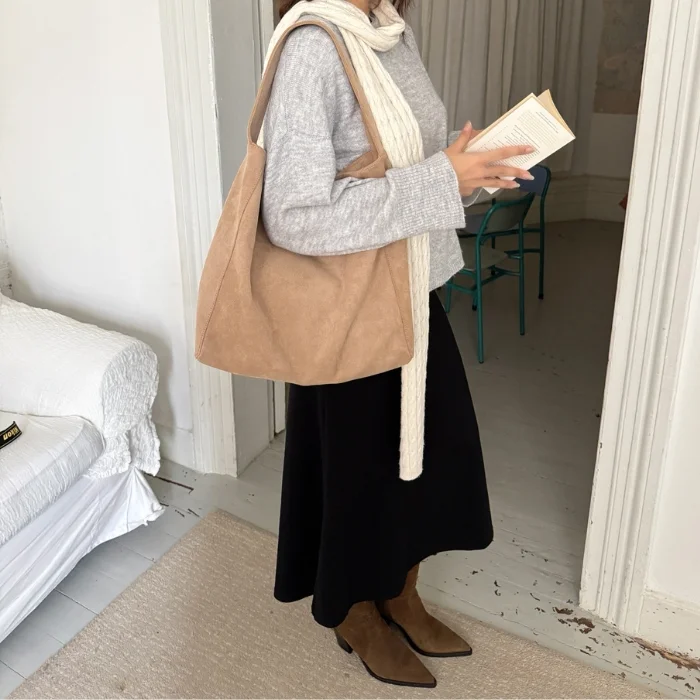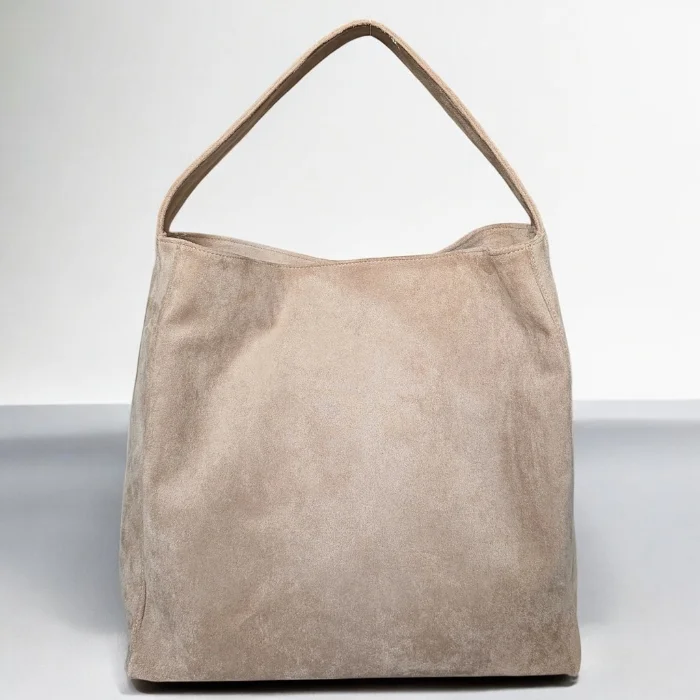 On the inside, there are two special pockets, one of which is zippered. This detail allows you to transport your belongings in an orderly and safe way, so you can always easily find what you are looking for. Carefully selected suede fabric shows high resistance to feathering and abrasion and remains stylish for many years as on the first day.