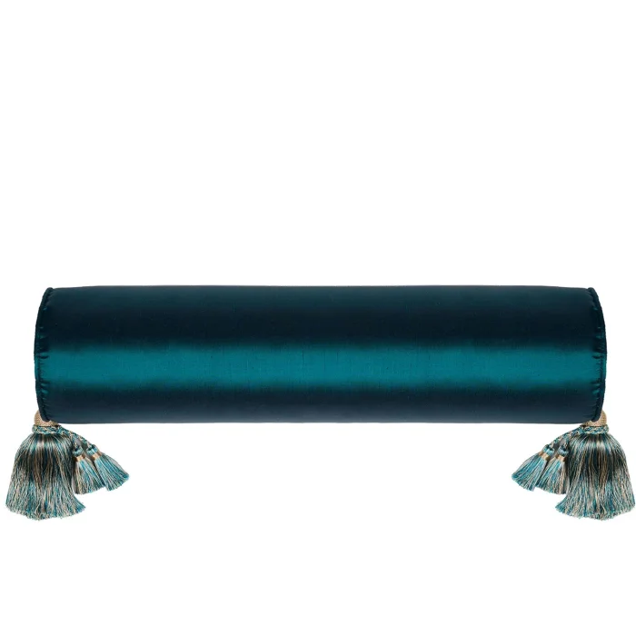 The cylindrical balin throw pillow draws attention with its silk fabric with a shiny surface texture. The deep petroleum green tone offers a look that is both elegant and modern, while the tassel details placed at the ends of the pillow add a decorative touch to the design. Thanks to its soft form, it offers a functional usage area for waist or neck support. Its high-quality silk fabric creates subtle tonal transitions in combination with light, giving the pillow a sophisticated look. High-density sponge is used in the filling. Product Size: 15x60 cm. Care Instruction: Dry cleaning only. Material: Silk Fabric.