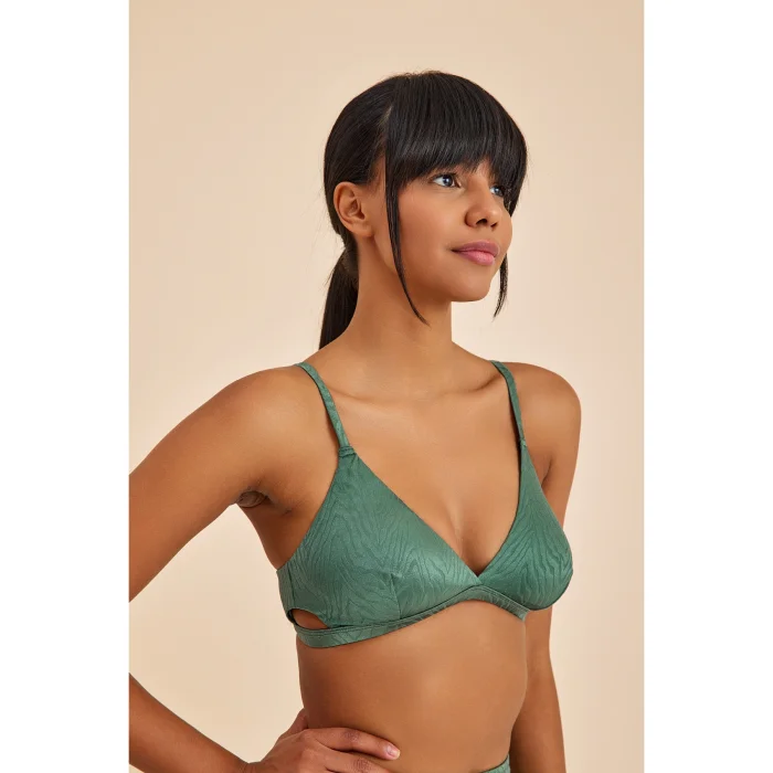 Designed for those looking for elegance and comfort, this bikini top will keep everyone on the beach and poolside. The unprinted self-patterned fabric, produced with advanced technology, offers a unique and striking look, while the overalls also stand out with their stitching details. The detachable pads allow you to shape them according to your personal preference, so you get a comfortable and natural look. The side window details add an elegant touch to your style, while the piping detail at the waist offers a striking accent. The adjustable straps are designed to fit perfectly in any size. Plus, cup and wing liners provide support, while metal clips offer durability and style. This bikini top is sure to be a favorite for those looking for authenticity.