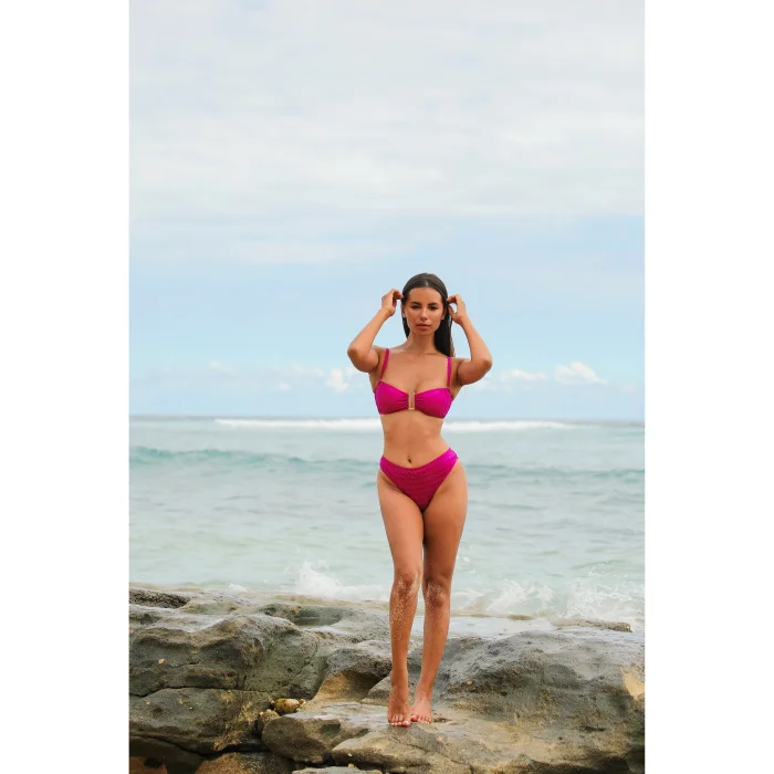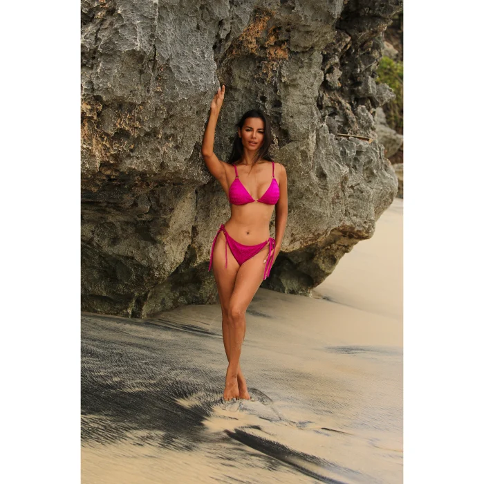 Easy and comfortable to use with its functional straps, this bikini top offers the durability and elegance of jacquard/woven fabric together. It provides support thanks to its padded structure, while elegant piping details add a modern touch to the design. It's the perfect choice for those seeking both comfort and style on the beach. We use recyclable materials to protect nature and reduce our carbon footprint. Since returns and exchanges require extra shipping, we recommend that you choose your size carefully; If you're unsure, we'll be happy to help.