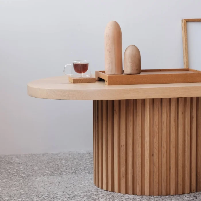 elegant oak top and slatted coffee table of the DOCIA series adds an aesthetic touch to your living spaces with its modern design and ergonomic structure. The delivery time to the cargo is 10 working days.