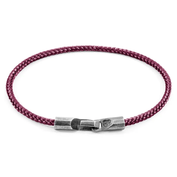 The Aubergine Purple Talbot Silver and Rope Bracelet was both designed and skilfully handcrafted completely in Great Britain. Combining British craft manufacturing with a discerning modern-minimalist style, this ANCHOR & CREW bracelet features: