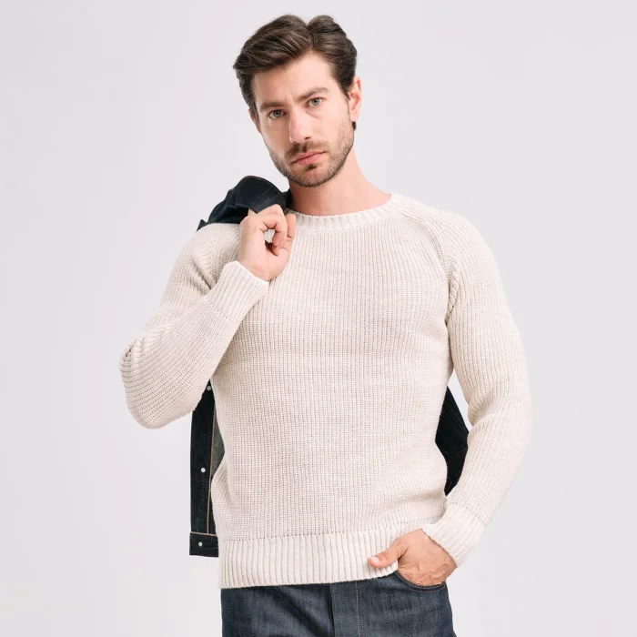 • Model measurements are height/187, weight/80, chest/105, waist/84 cm, and the model wore size M of this sweater in the shooting.