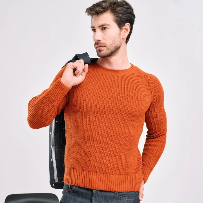 • Model measurements are height/187, weight/80, chest/105, waist/84 cm, and the model wore size M of this sweater in the shooting.
