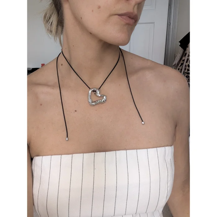 Product: Silver Wavey Textured Heart Adjustable Cord Necklace
