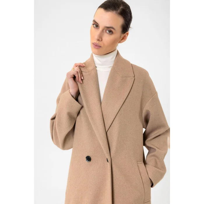 The Antioch Oversize coat, which stands out with its comfortable form, has a closure detail on the front surface. The coat with closure details adapts to both your classic and sporty suits with its simple and stylish line. The model, which allows you to be comfortably protected from the cold of autumn and winter seasons, also attracts with its privileged fabric texture.