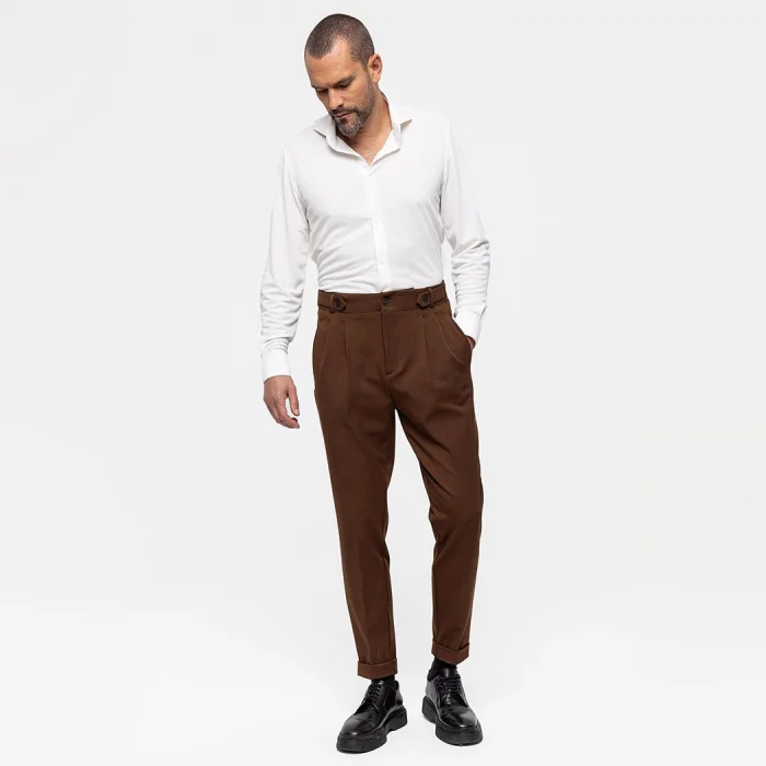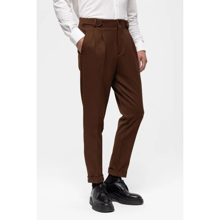 Product: High Waist (boyfriend) Pleated Fabric Trousers