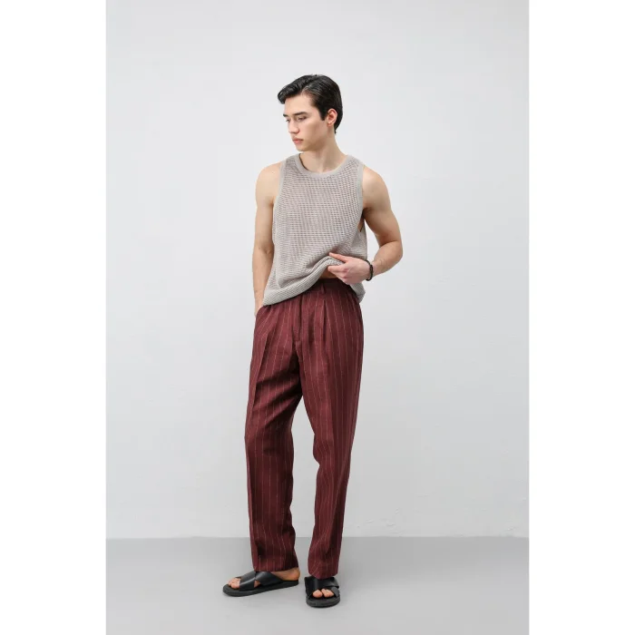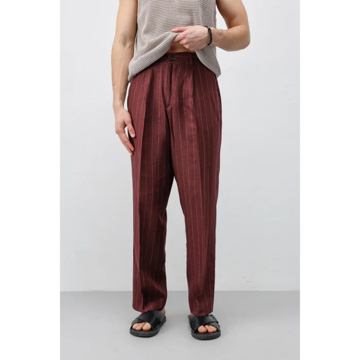 -Product: Linen Blend Striped TrousersDesigner: AntiochProduct Code: A26Y2853LBordoThis product will be sent by Antioch on behalf of Hipicon