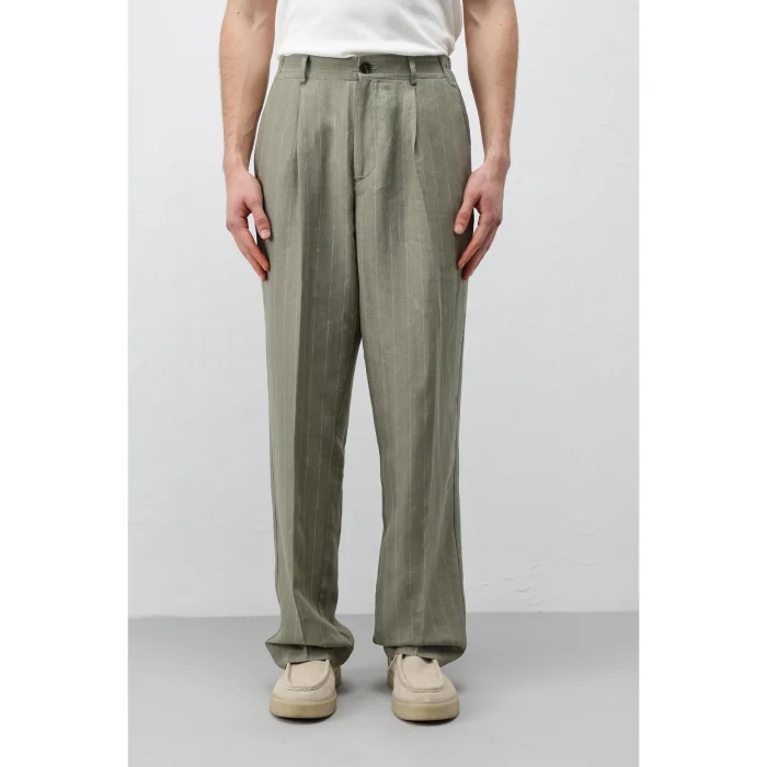 Linen Blend Striped Trousers