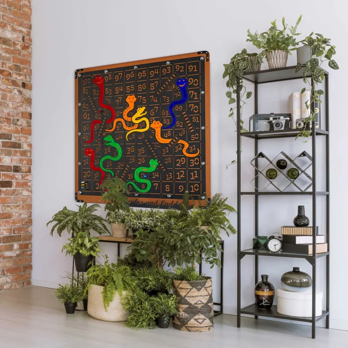 If any player comes to any stair head, gets to the top of the stair and continue from there. If any player comes to any snake head, s/he has to go down till the tail and continues from there.