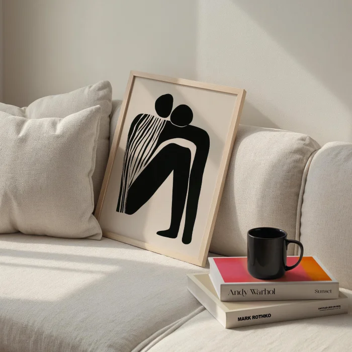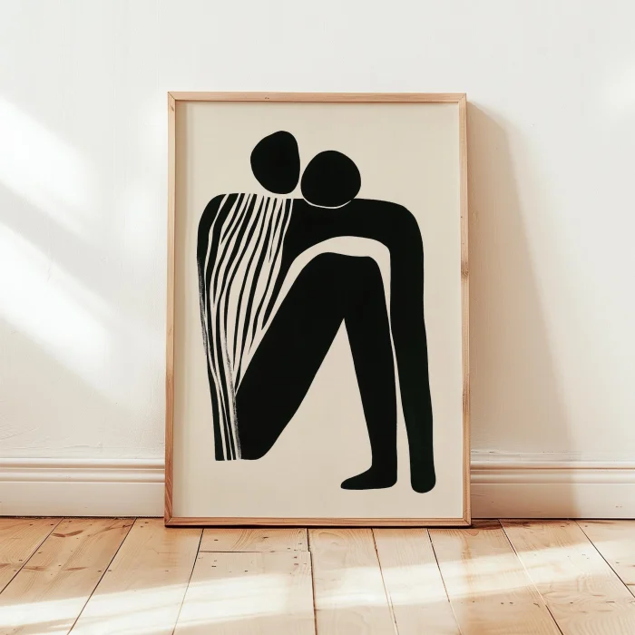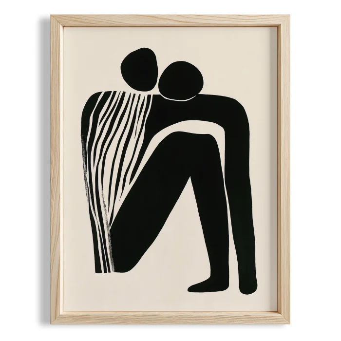 Product: İki Ruh Tek Form - Siyah Figüratif Wooden Framed Wall Art