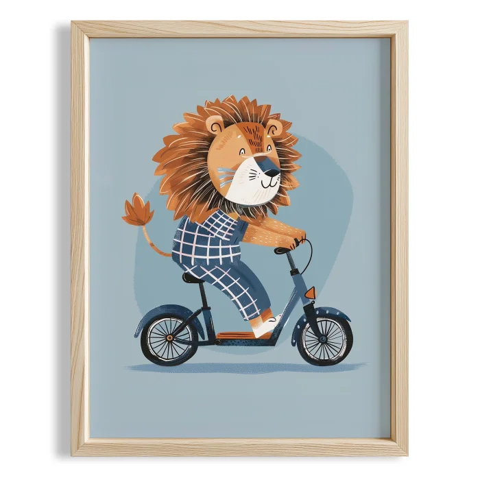 Product: Bisiklet Riding Lion Boys' Room Wooden Wall Art