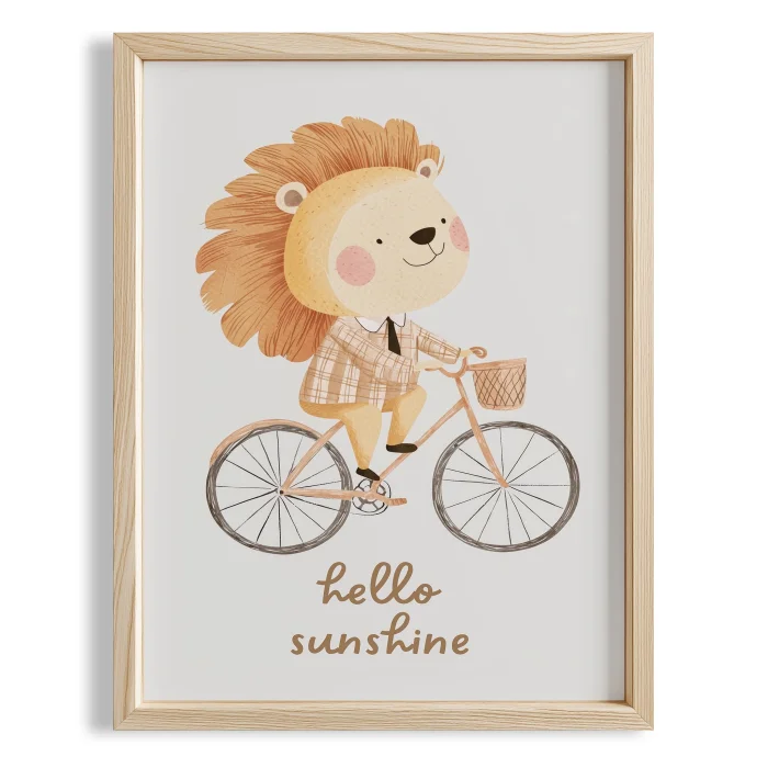 Product: Bisiklet Süren Lion Öğretici Children's Room Wooden Framed Wall Art