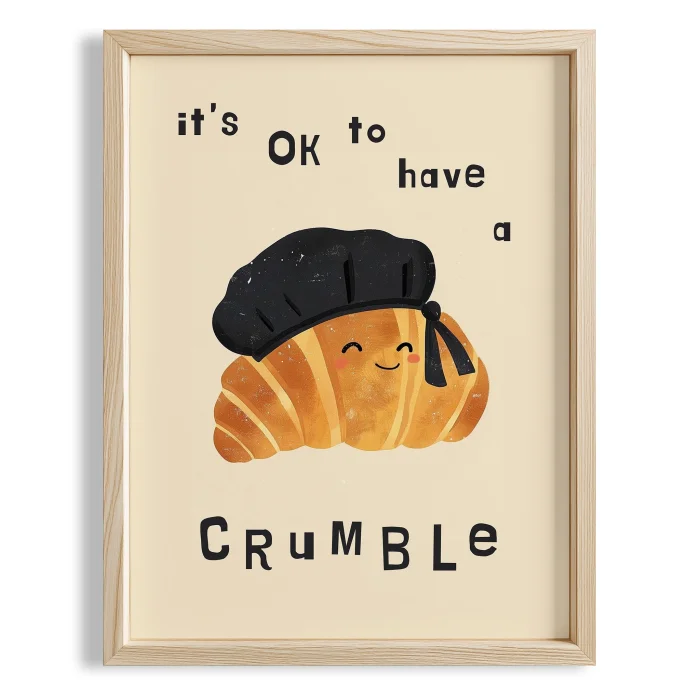 Product: Croissant Motivasyon - Girls' Room Decor Wooden Framed Wall Art