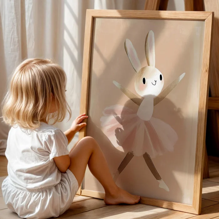 Cute Balerin Rabbit Girls' Room Wooden Wall Art