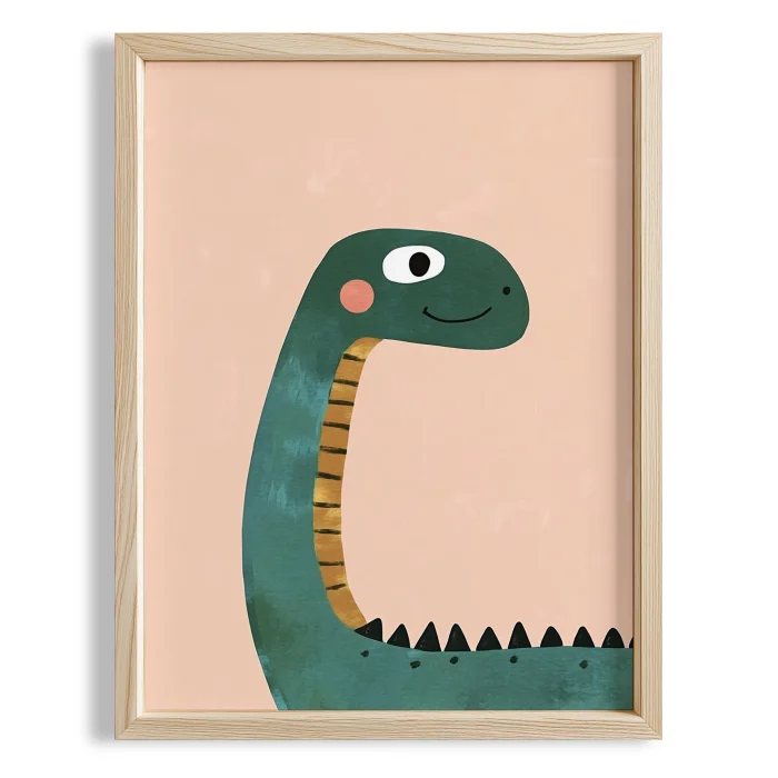 Product: Cute Gülen Dinosaur-themed With Pink Background Kids' Room Wooden Wall Art I