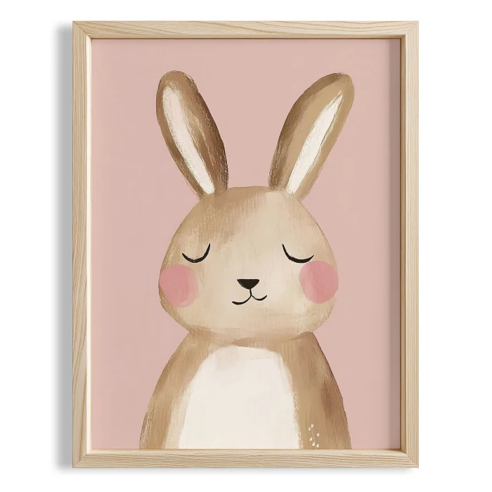 Product: Cute Rabbit With Pink Background Boho Girls' Room Wooden Wall Art