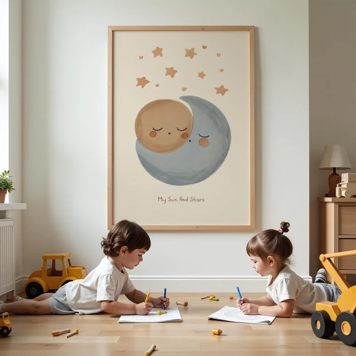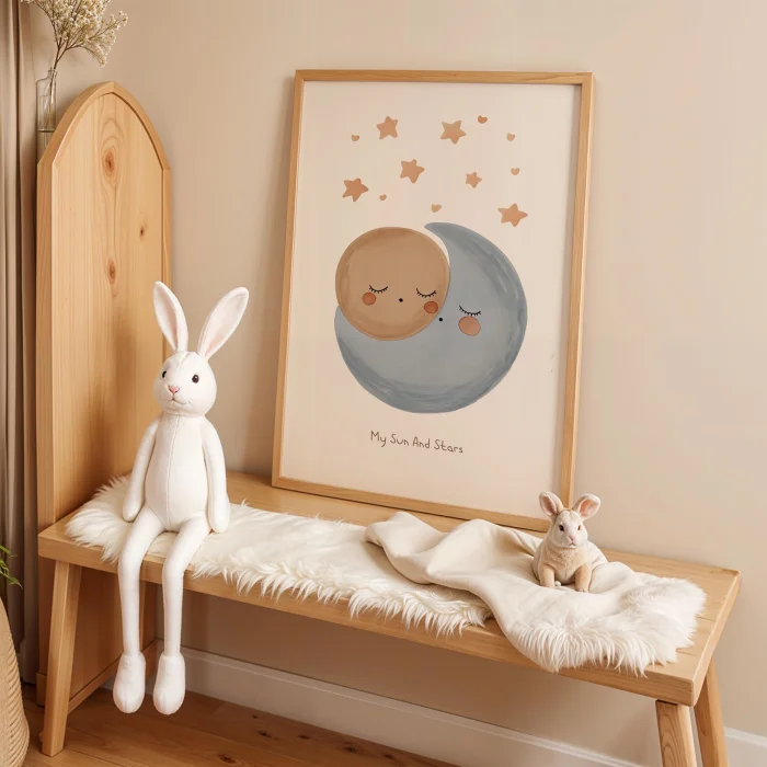 Product: Hugging Moon And Sun Kids Room Wooden Wall Art