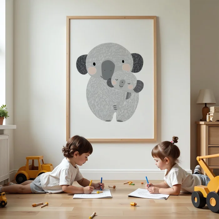 Product: Mother Koala Hugging Her Baby Kids Room Wooden Wall Art