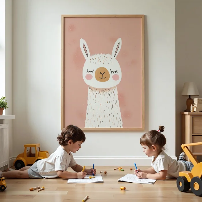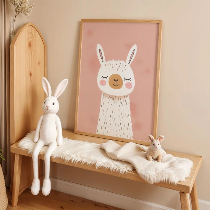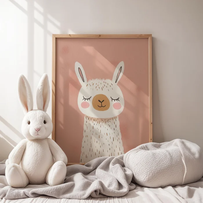 Product: Pink Arka Background Sweet Lama - Children's Room Wooden Framed Wall Art