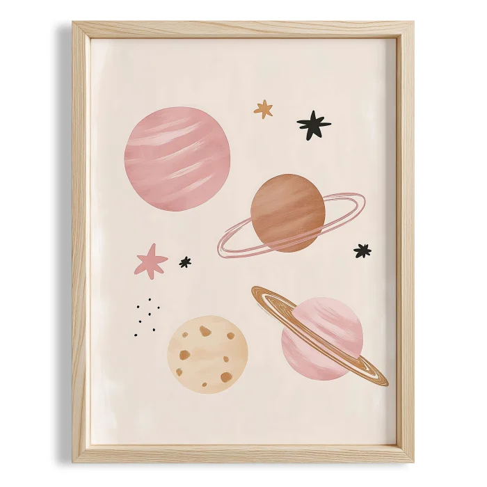 Pink Planets Space-themed Boho Girls' Room Wooden Wall Art
