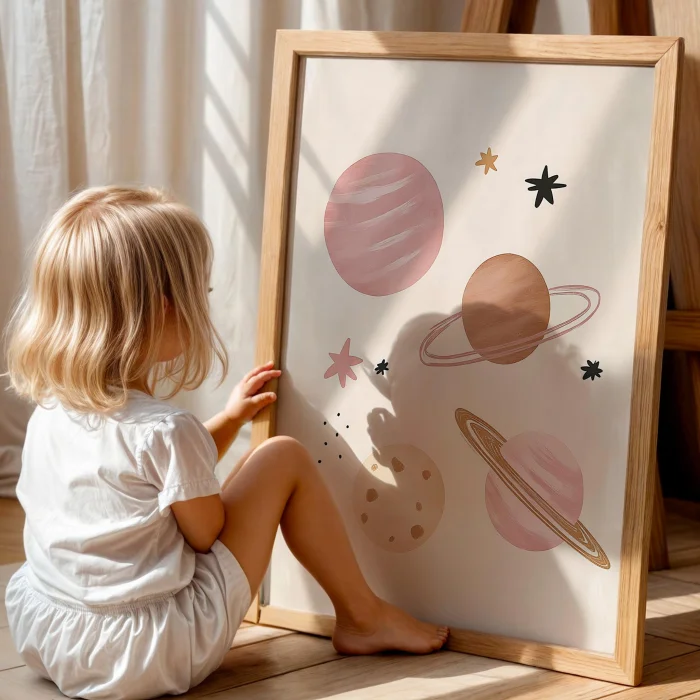 Pink Planets Space-themed Boho Girls' Room Wooden Wall Art