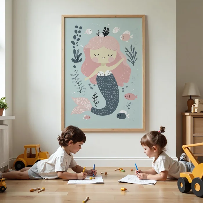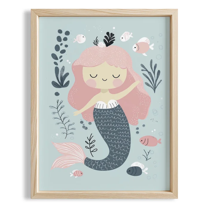 Product: Princess Swimming Under Sea Kids Room Wooden Wall Art