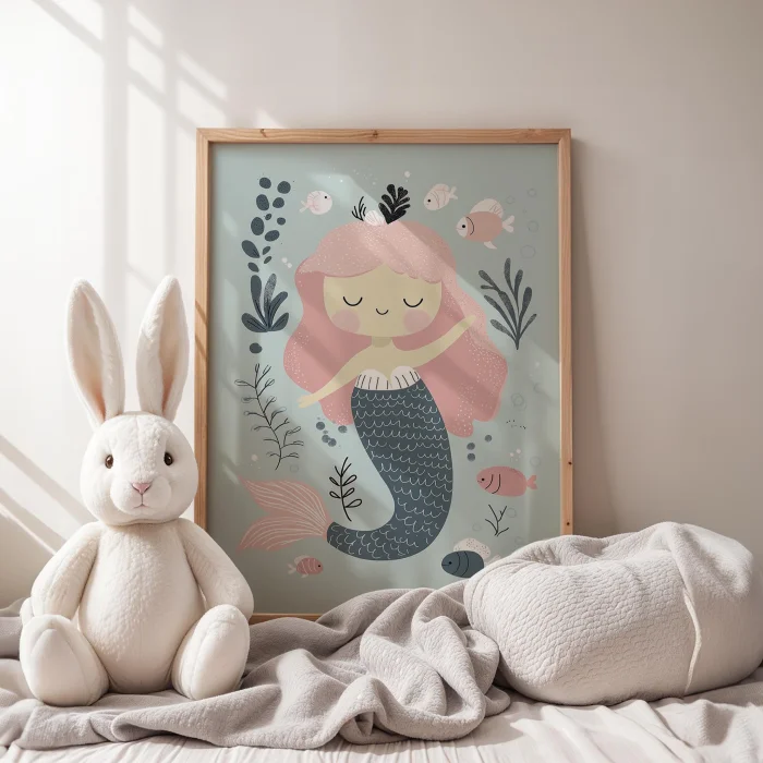 Princess Swimming Under Sea Kids Room Wooden Wall Art