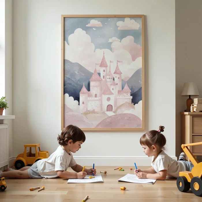 Product: Rainbow Renkleriyle Şato Children's Room Wooden Framed Wall Art