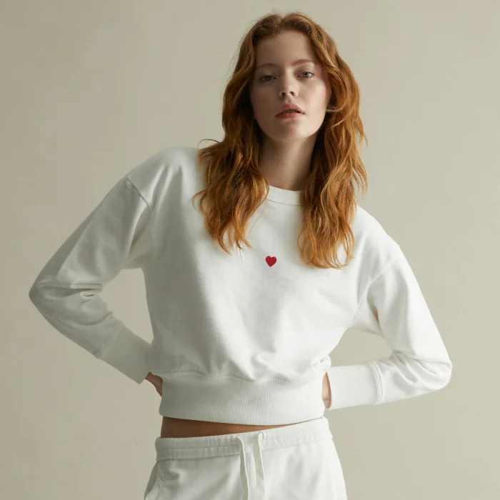 Sweatshirt Cropped / Unisex - Heart Embroidery