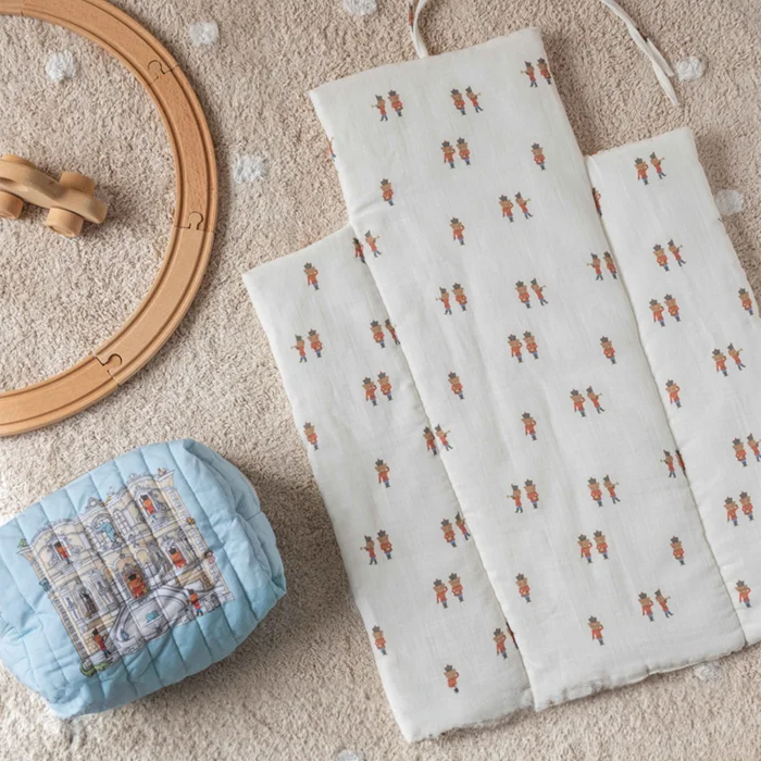 The set content is as follows; Grooming Bag Bottom Opening Mat Product features: Material: Cotton Fabric Type: Interlock Paint: GOTS Certified Paint