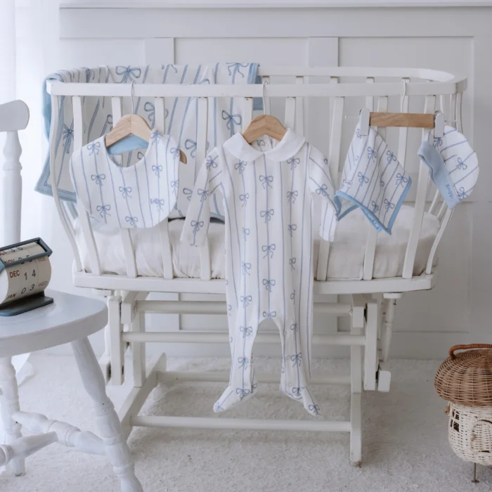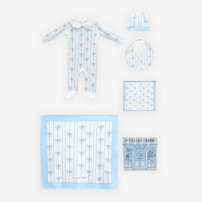 The set content is as follows; Overalls (0-3 months) Blanket (80x80 cm) Newborn Hat Newborn Gown Mouth Cloth (30x30 cm) Product features: Material: 100% Cotton Fabric Type: Interlock Paint: GOTS Certified Paint