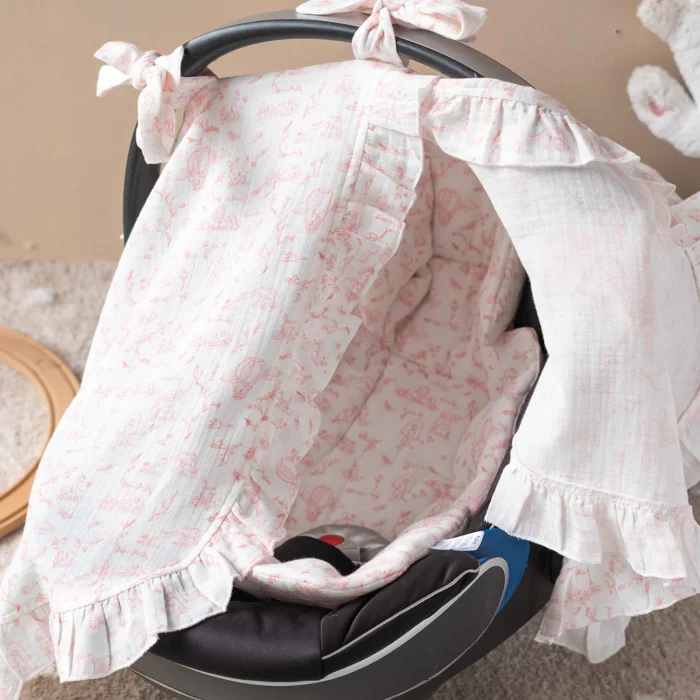 The set content is as follows; Stroller Cushion Stroller cover Product features: Material: Cotton Paint: GOTS Certified Paint