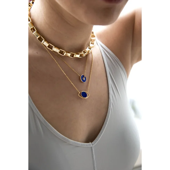 Gold filled brass central hole pendant necklace colored with red enamel